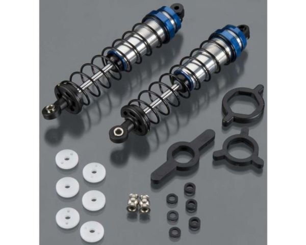 Fits short course trucks and other 1/10 scale vehicles such as the Traxxas 2WD and 4WD Stampede, and electric Rustler 12mm Big Bore design with single low friction X ring seal. Pistons and shaft guides constructed of white Delrin. Hard chrome coated 3.5mm shock shaft. Three different piston options 1.4, 1.6 1.8, and a blank piston for drilling to a custom size. Easy access bleeder cap screw. Compatible with the Pro-Line PowerStroke Universal Shock Mounting Kit, PROC6079
