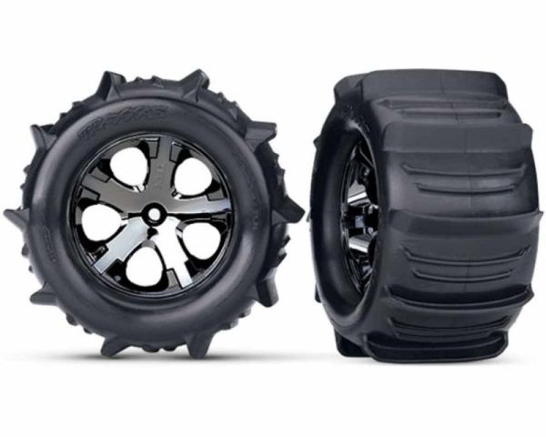Tires and wheels - assembled - glued (2.8) (All-Star black chrome wheels - paddle tires - foam inserts) (electric rear) (2) (TSM rated)
